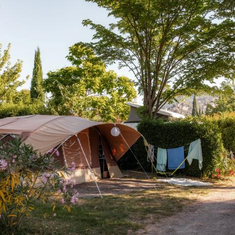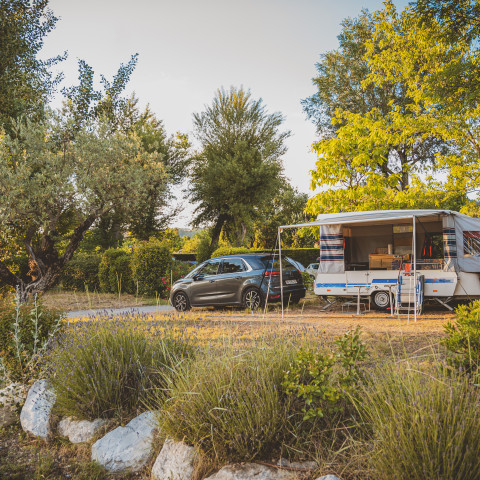 The mobile homes on our campsite in Provence are set up on spacious, flat, and grassy pitches, ranging from 100 to 130m². You can park your vehicle in a reserved parking space.