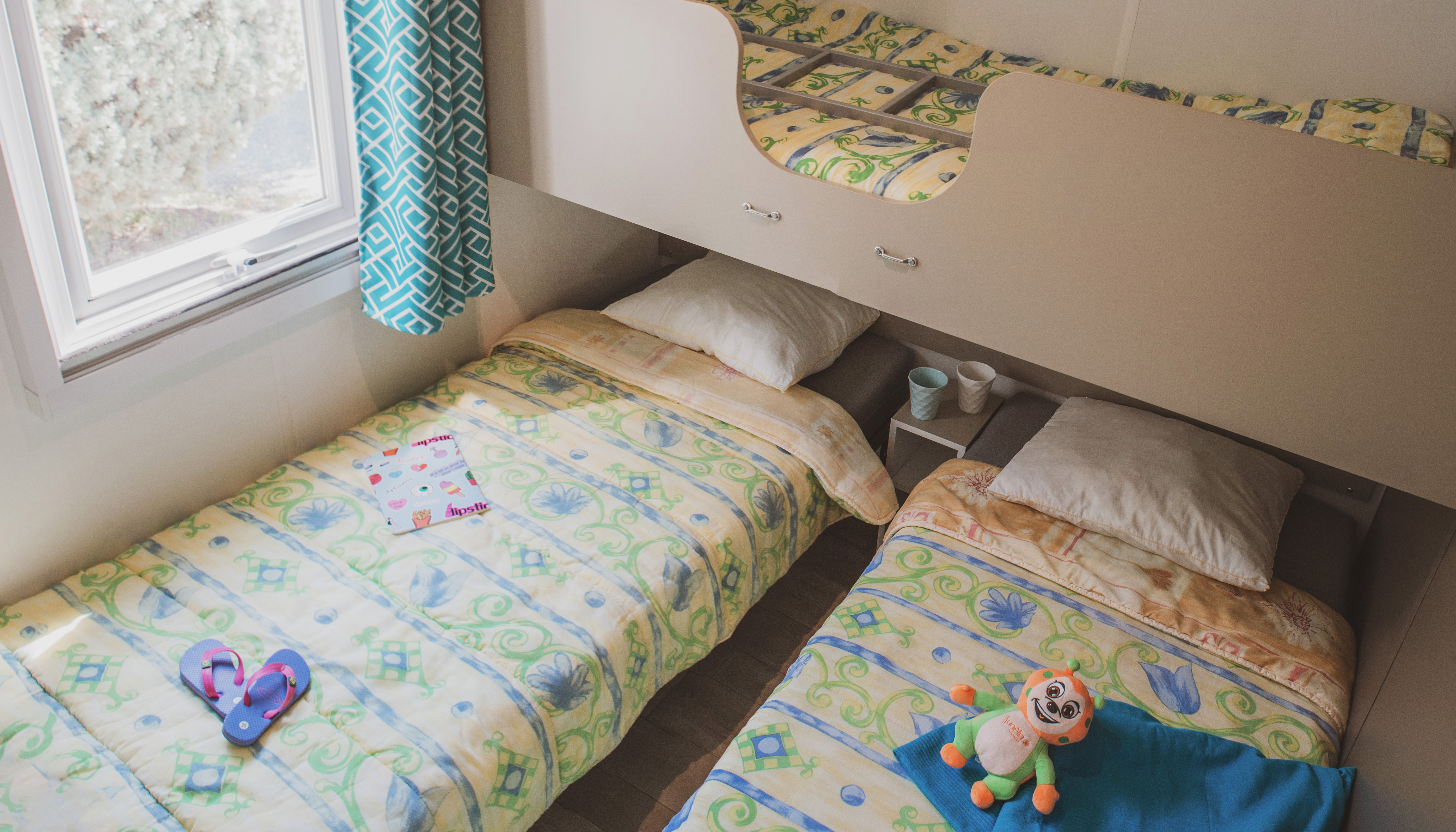 - 2 Single bed (80x190) (duvet and pillows provided)