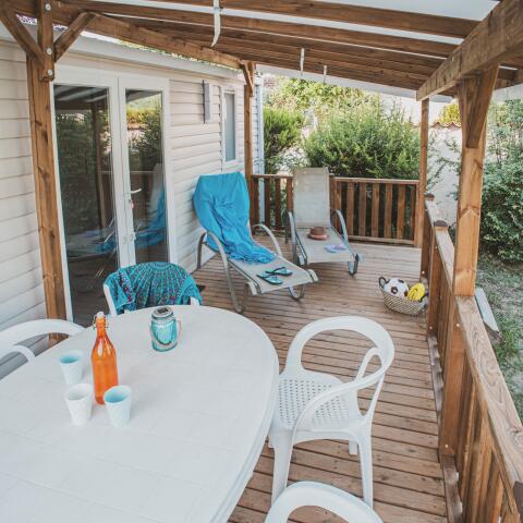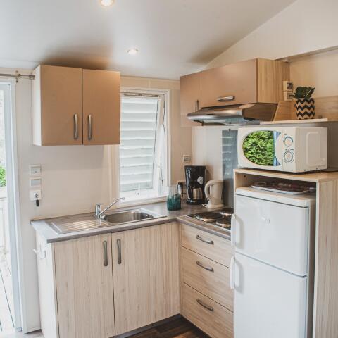 Our Confort range consists of fully-equipped mobile homes or chalets with television, air conditioning and toaster.