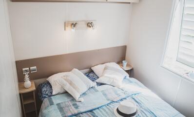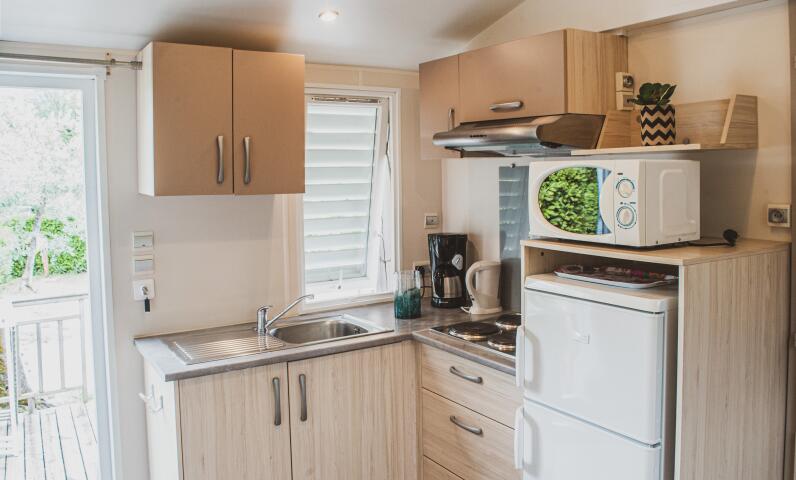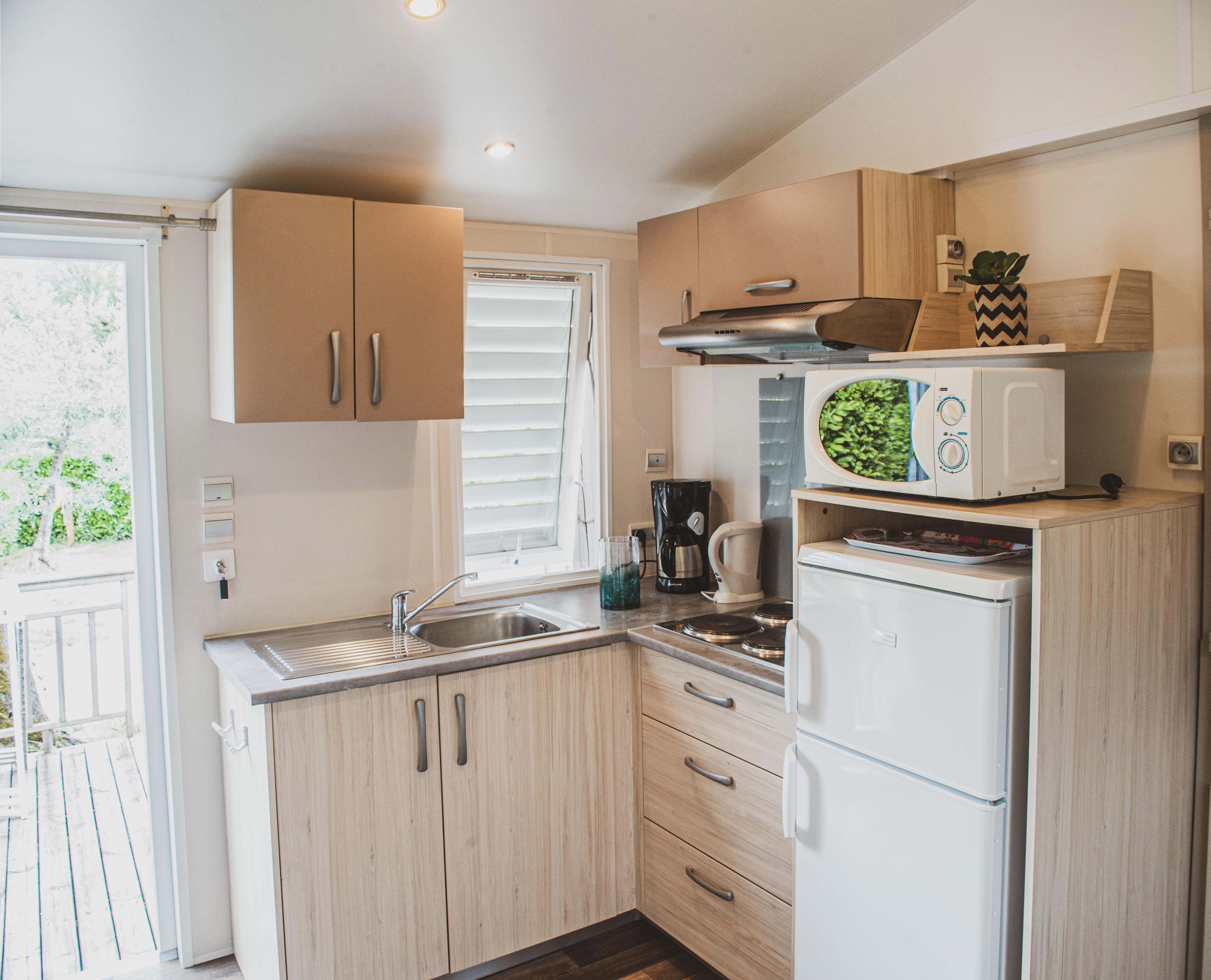 Compact and functional, this mobile-home with 2 bedrooms has the same level of comfort and equippment as any other.