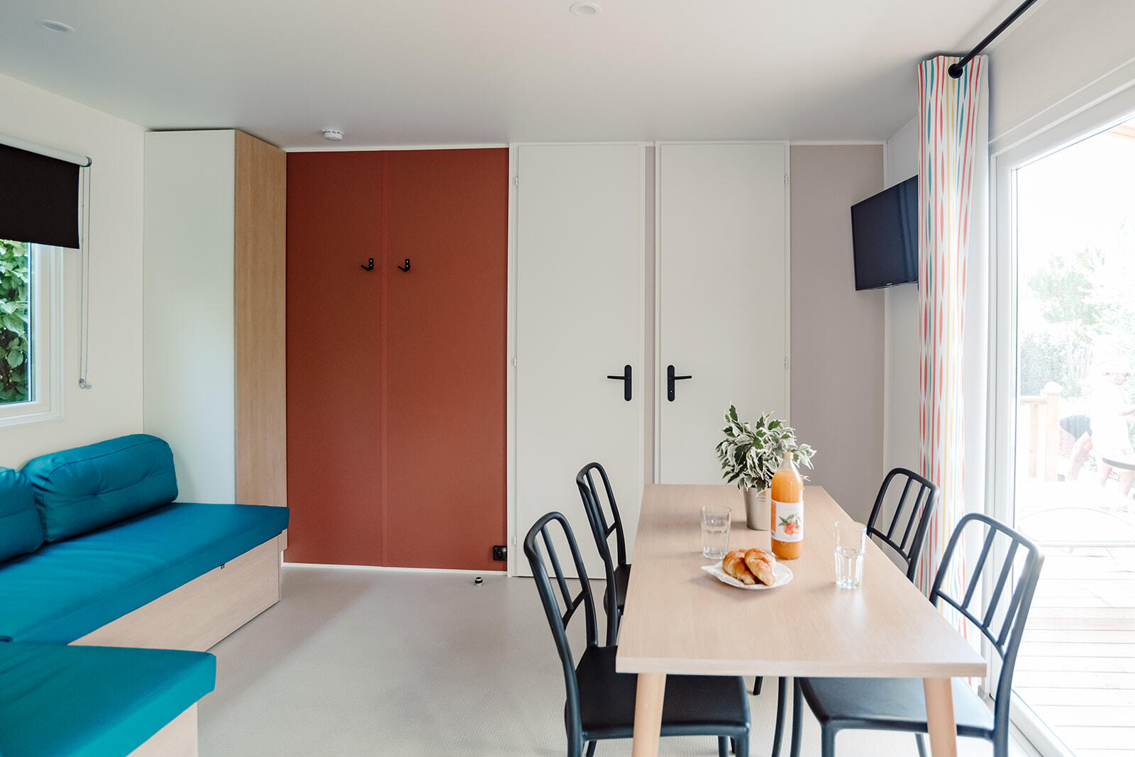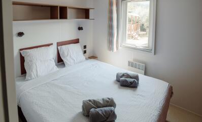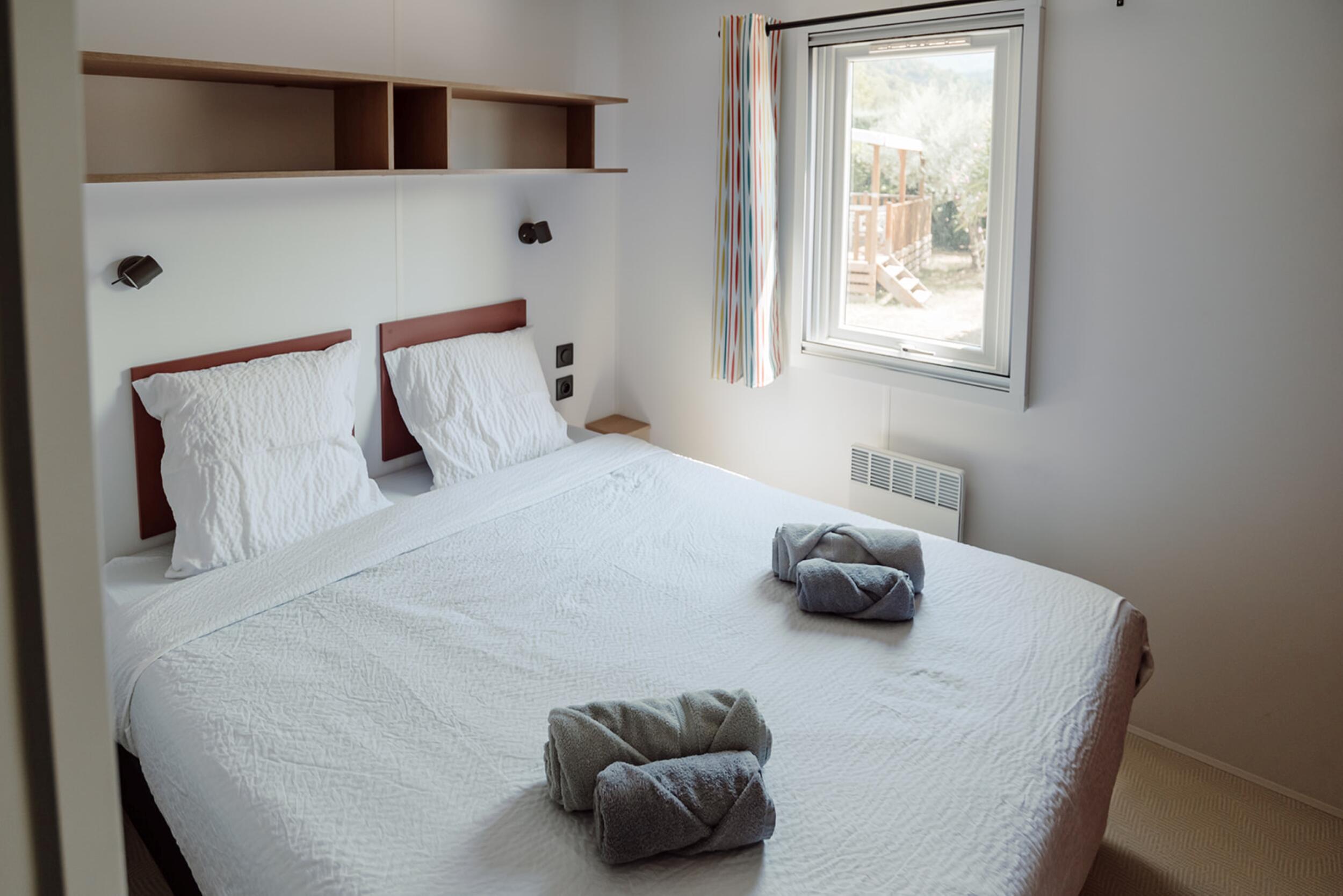 - Double bed (160x200) (duvet and pillows provided)