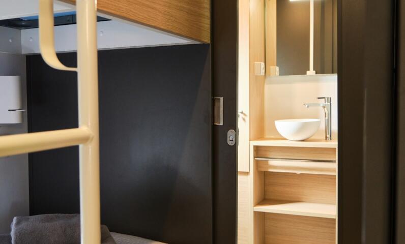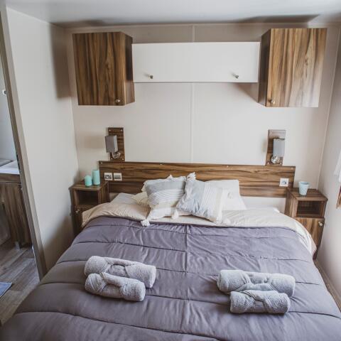 New generation of mobile-homes with an innovative and simple design. With 3 bedrooms and 2 bathrooms/WC, these mobile homes are incredibly comfy. Located in a calm area at the end of the camping site.