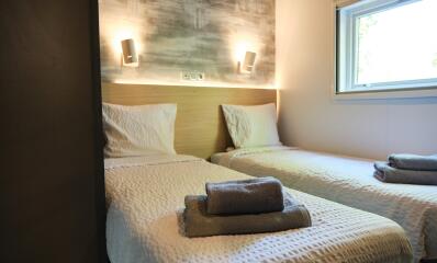 - 2 Single bed (80x190) (duvet and pillows provided)