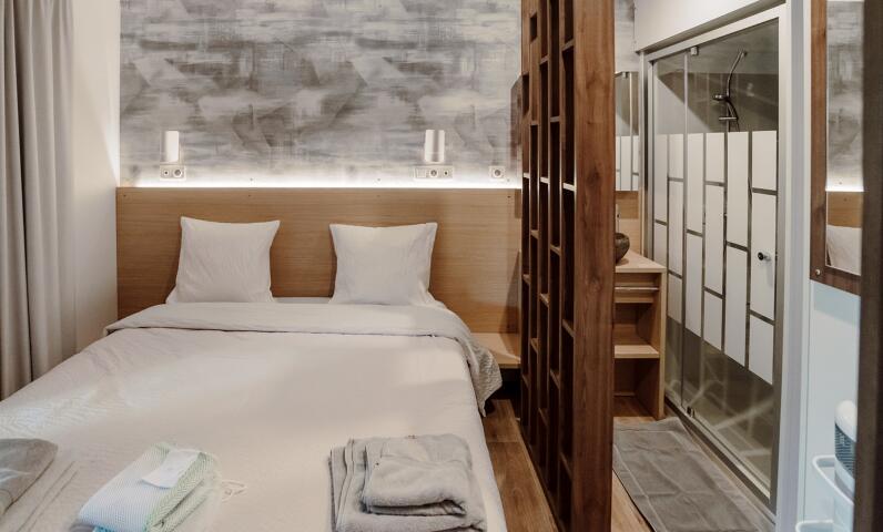 - Double bed (160x200) (duvet and pillows provided)