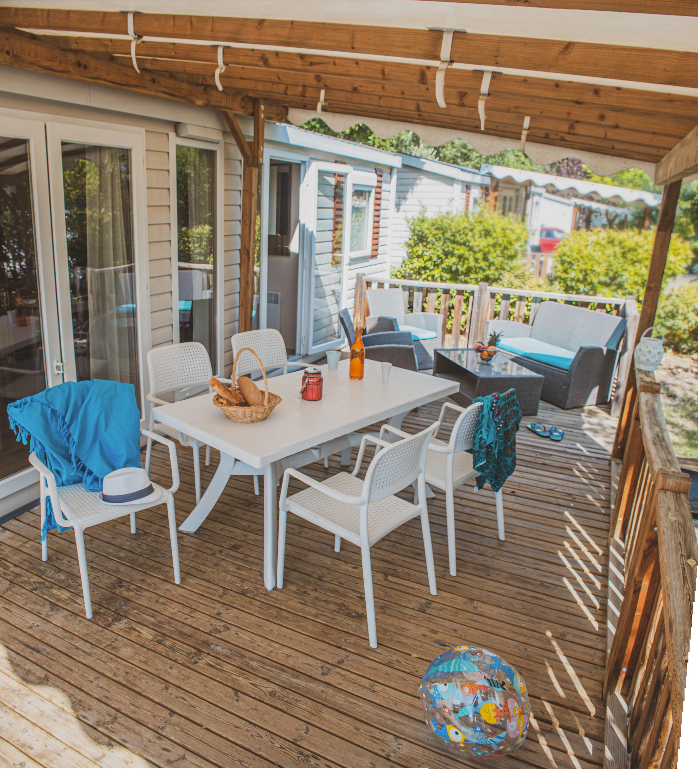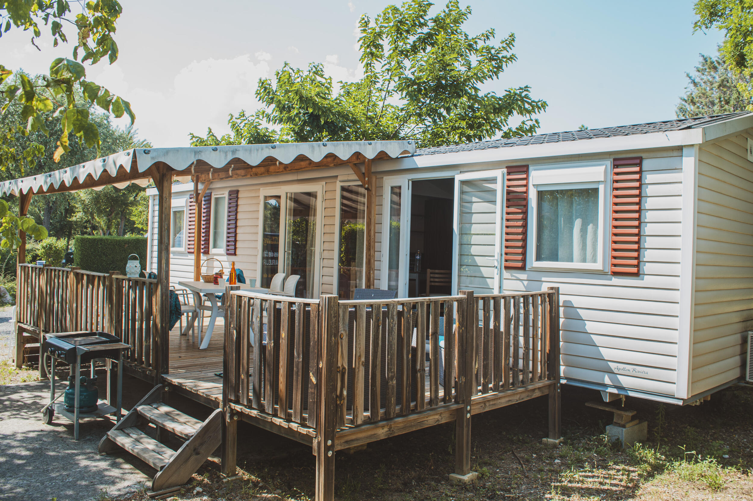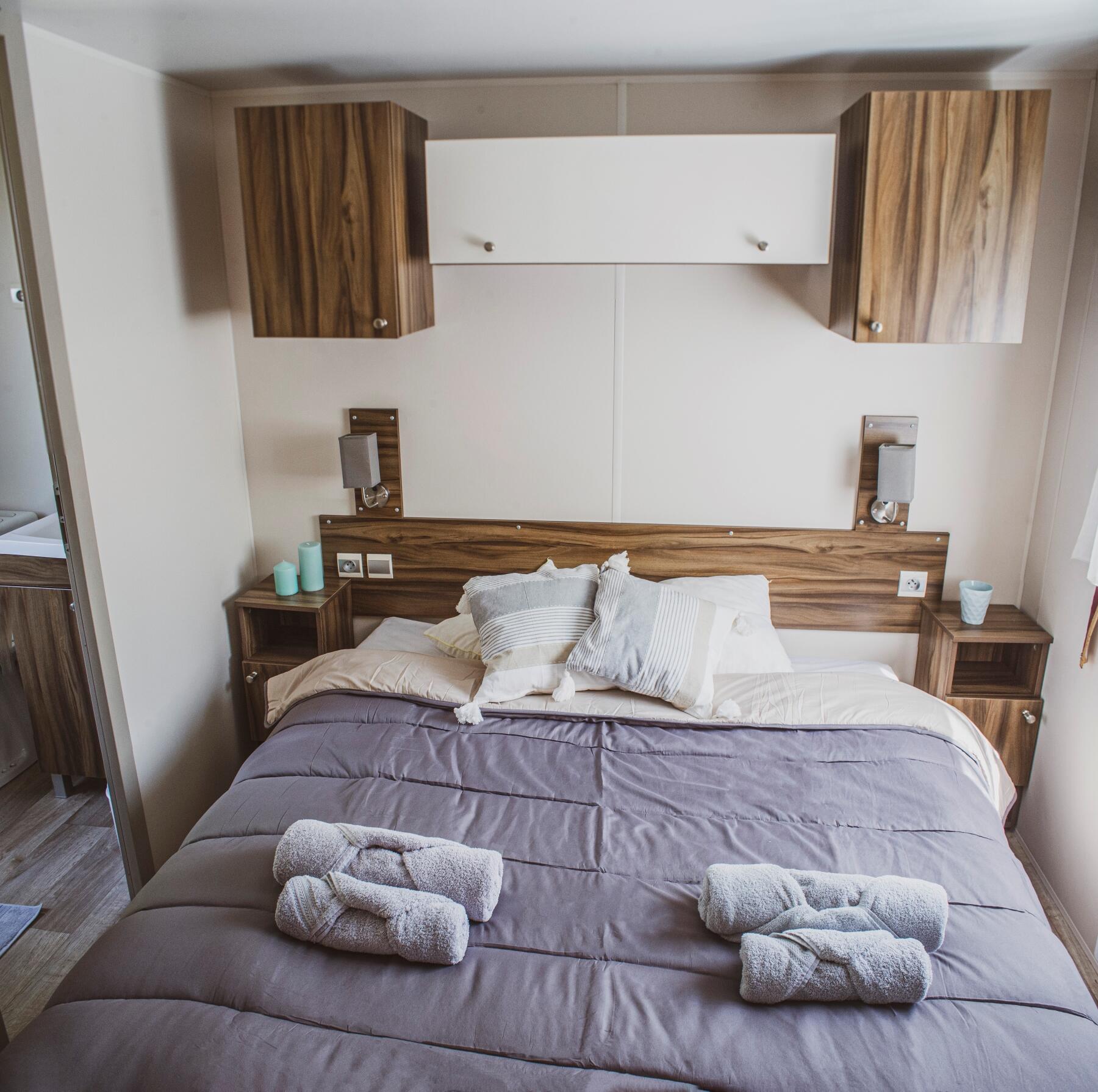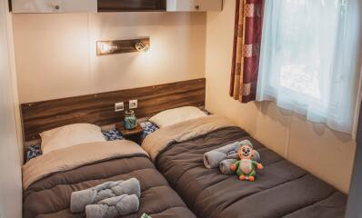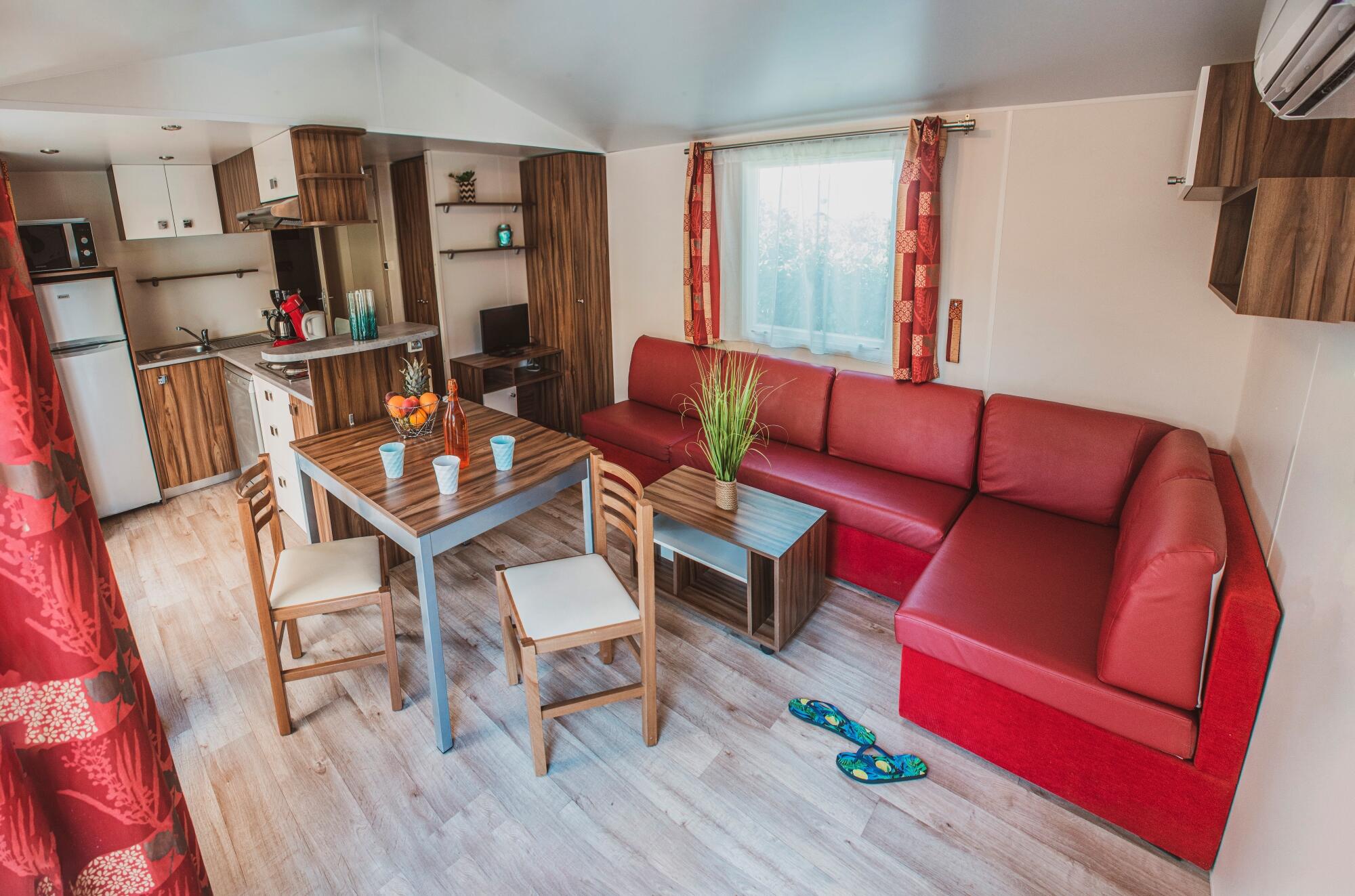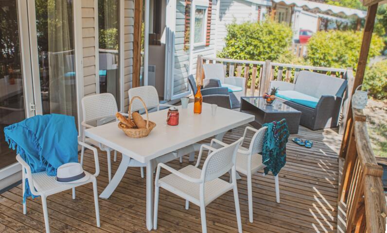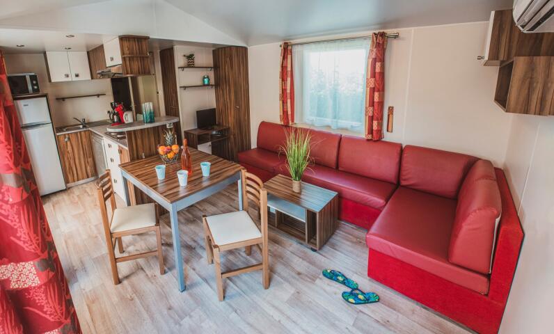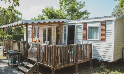 Top of the range accommodation with quality equipment. With 3 bedrooms and 2 bathrooms/WC, these mobile homes are incredibly comfy.