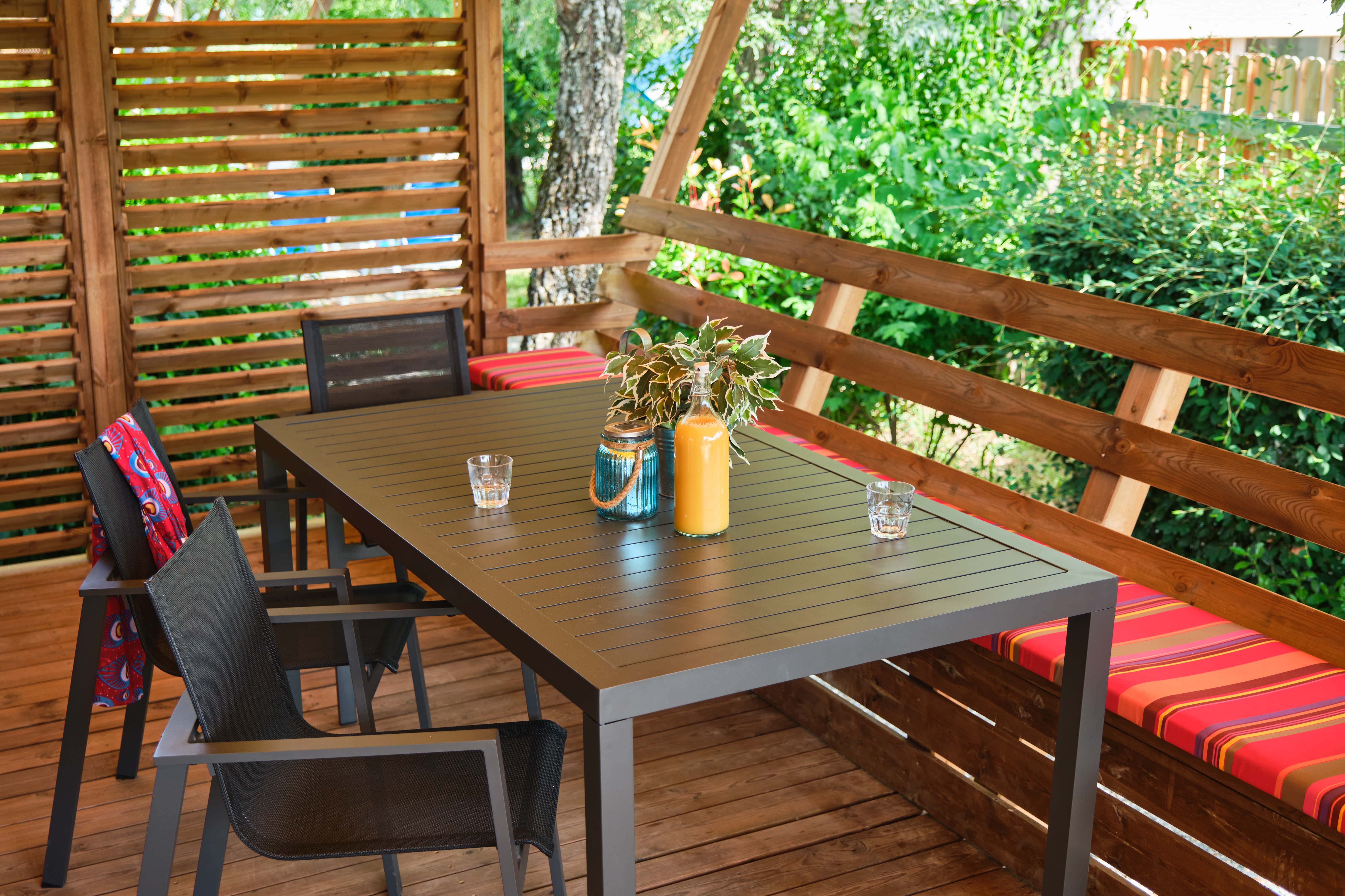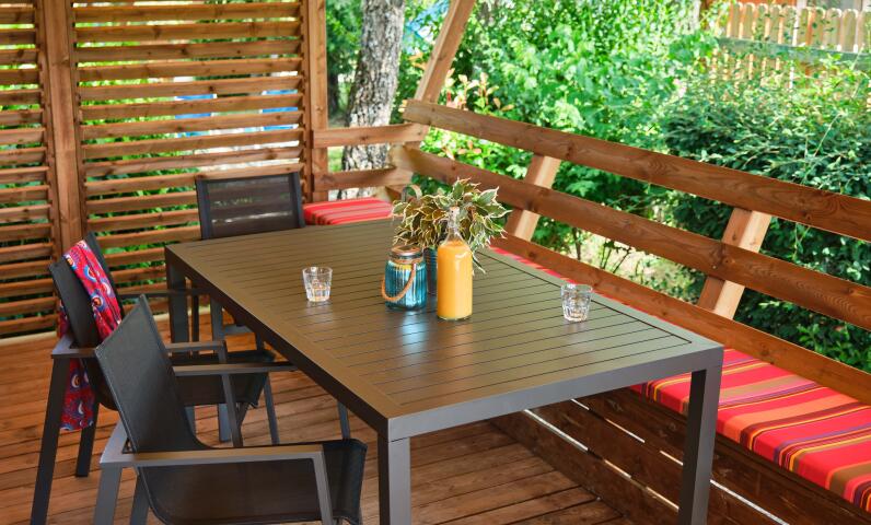 - Large semi-covered wooden terrace