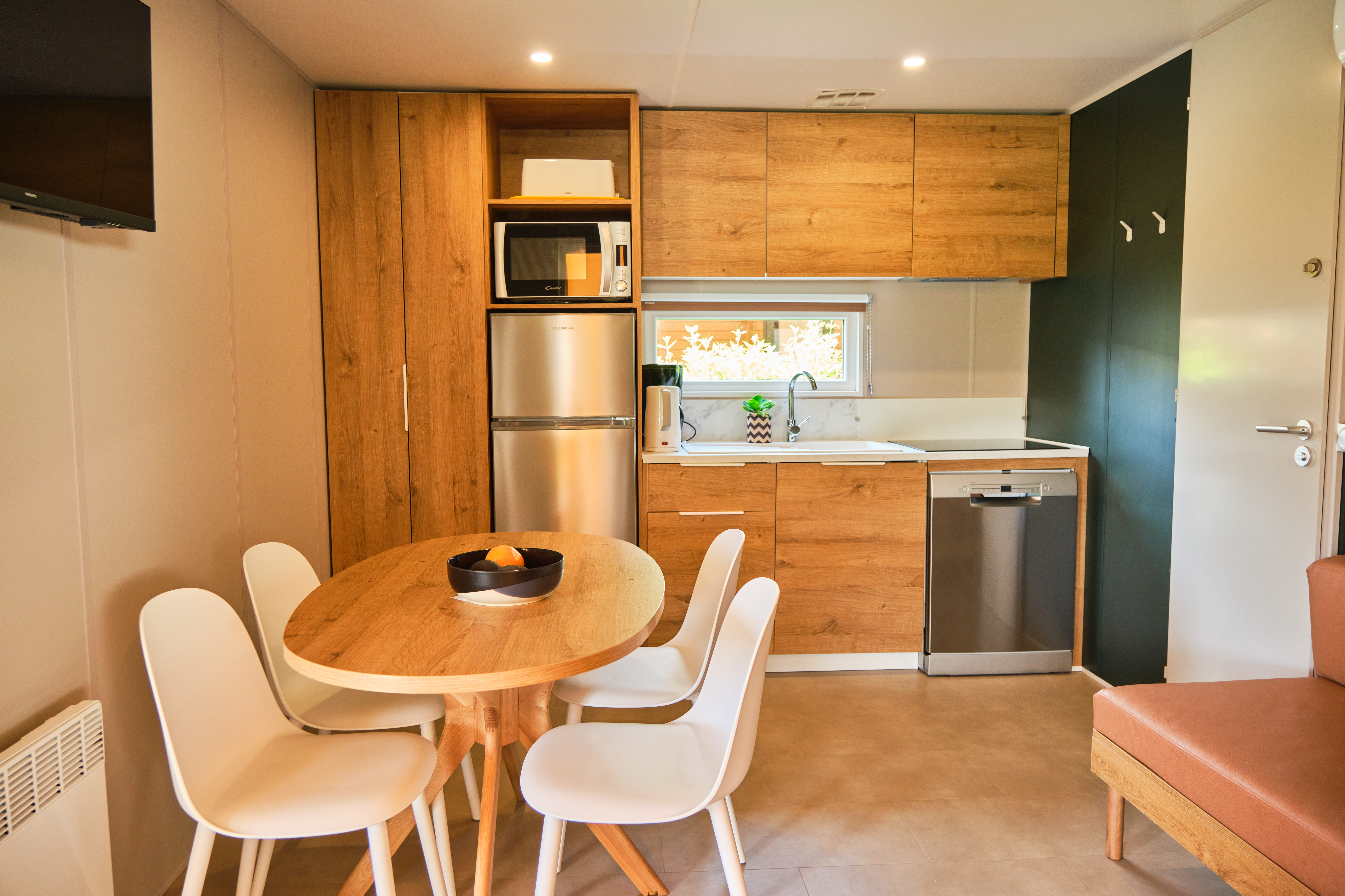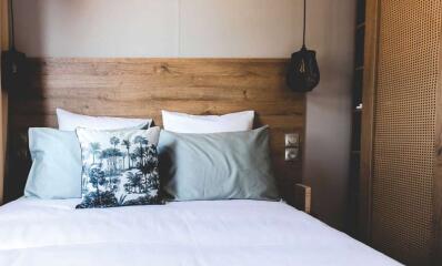 - Double bed (160x200) (duvet and pillows provided)