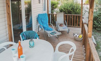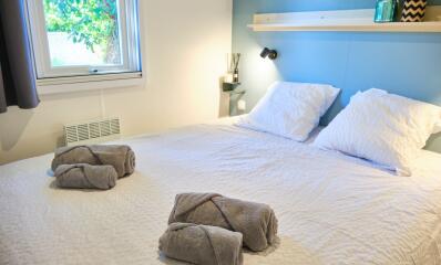 Ces mobil-homes de 3 chambres sont répartis sur le camping.