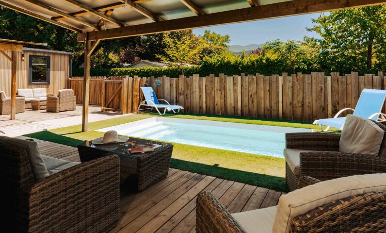 Profitez de vos vacances en camping 5 étoiles tout en vous prélassant autour de votre piscine privée.