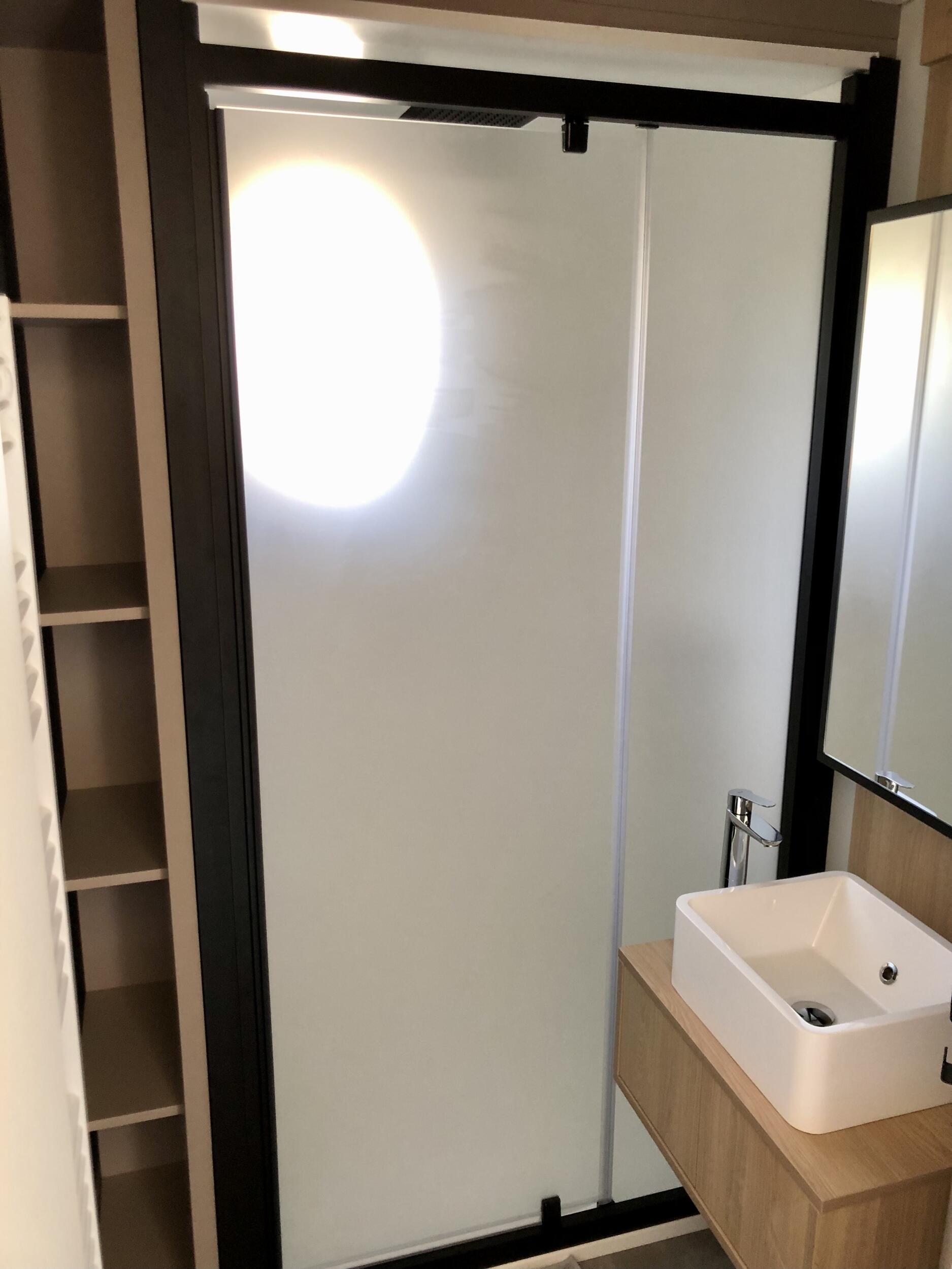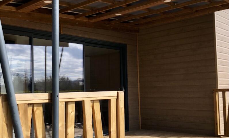 Sa terrasse intégrée et sa grande baie vitrée en façade apporte une belle luminosité dans le séjour. Le Chalet dispose de son propre jaccuzzi.