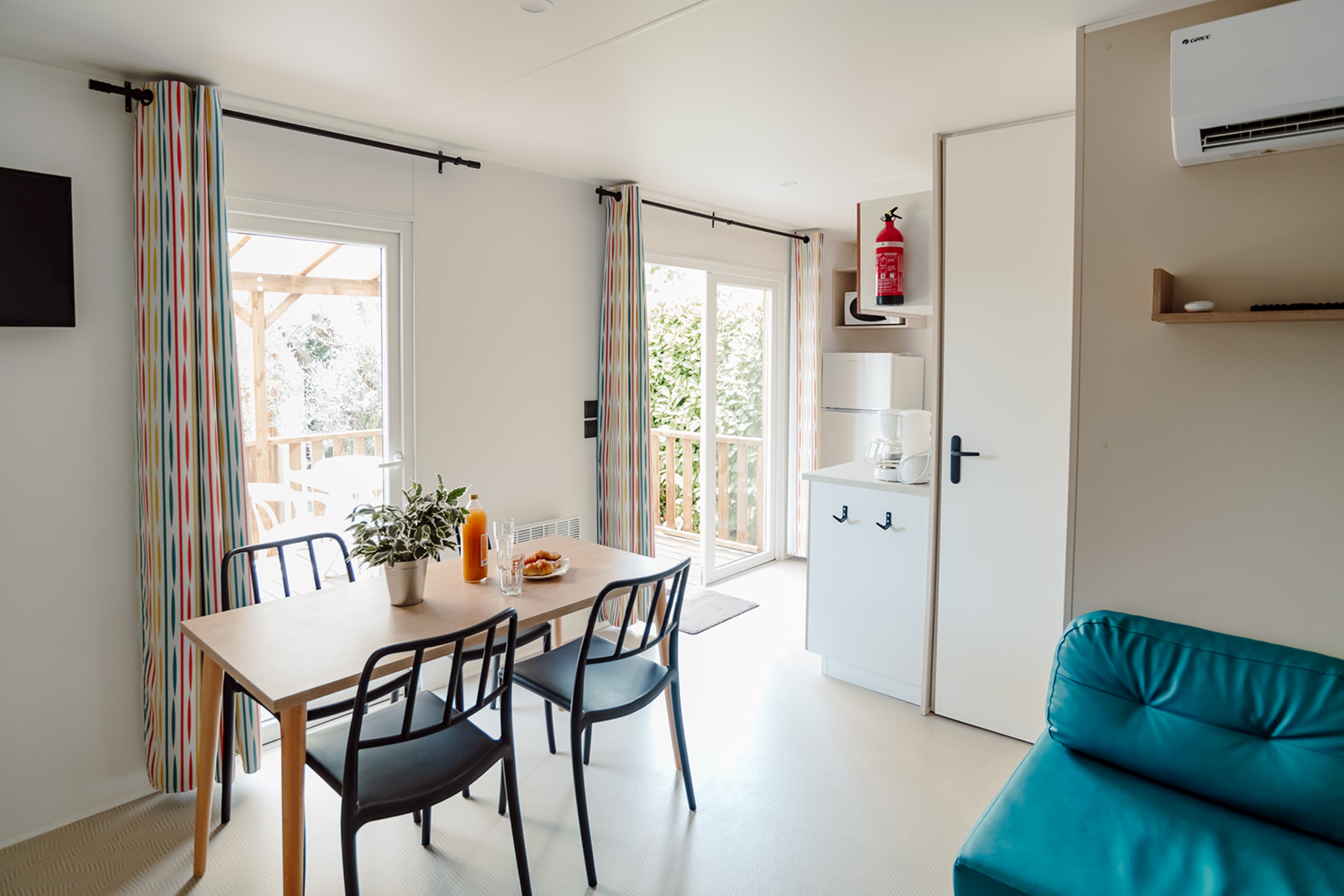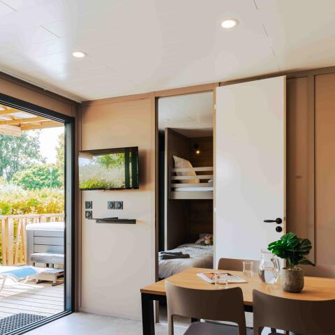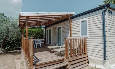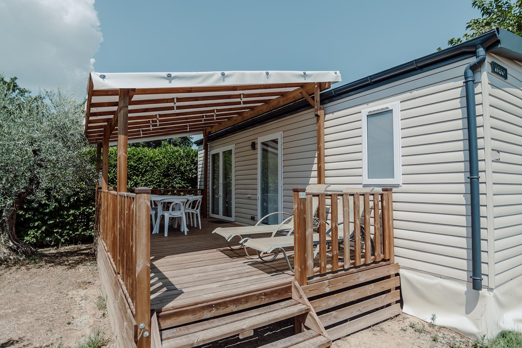 Mobile home met 2 slaapkamers.