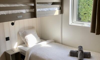 - 1 Eenpersoonsbed (80x190) (dekbed en kussens aanwezig)