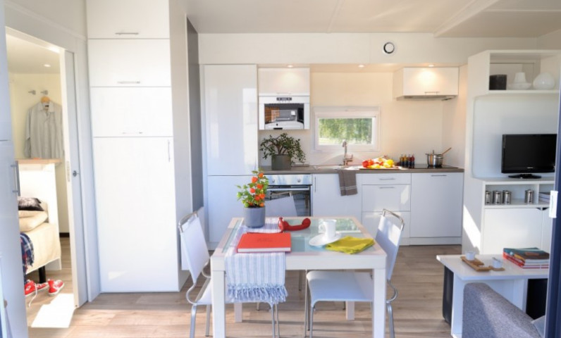 Deze luxueus uitgeruste stacaravans bieden een uitstekend comfort. Gelegen in een rustige omgeving aan de rand van de camping.